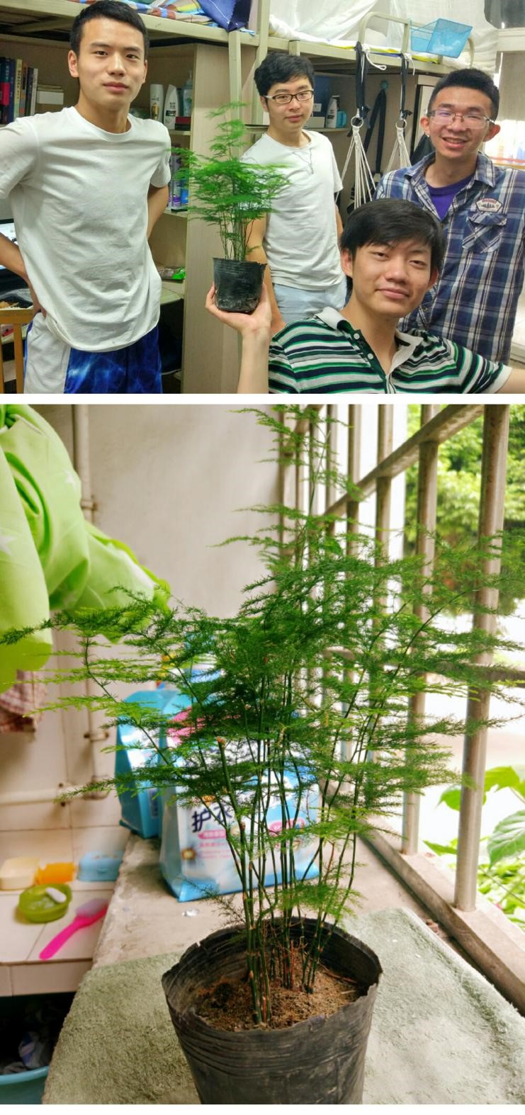 20184月中旬,一次偶然的机会,班委突发奇想,决定从班级各个宿舍搜集的废品(废塑料瓶、易拉罐等可回收物),换取了一株植物盆栽。然后由各个寝室轮流领养,每个寝室负责一星期,照顾植物盆栽。这个小宝贝如今正在各个寝室茁壮成长。
