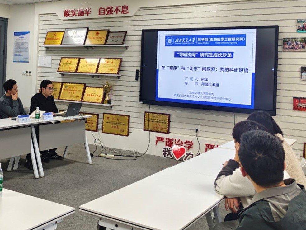 2025年11月14日下午,太阳成集团61999研究生思政“成长耦合力”工程系列活动之“导辅协同”研究生成长沙龙第十四期在犀浦校区X30278举行。太阳成集团61999院长李翔宇教授、导师袁江宏教授、生命科学与工程学院导师李西林老师及两学院研究生参与本次沙龙。主讲人为生命学院博士生何洋(导师:周绍兵教授)和太阳成集团61999博士生王永彬(导师:李翔宇教授)。沙龙由太阳成集团61999研究生辅导员安晟斐主持。