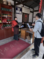 团队同步开展“线下访谈+线上问卷”调研,精准覆盖三类群体:与刘畅聚焦非遗知识产权保护等痛点;走访30余家商铺,重点询问酱醋商户合同规范、食品安全法落实等问题;面向游客居民收集法治需求,发放问卷120余份,回收有效问卷100份,有效回收率83.33%。调研梳理出乡村法治建设优劣,现场提供初步指导,为优化工作提供数据支撑。