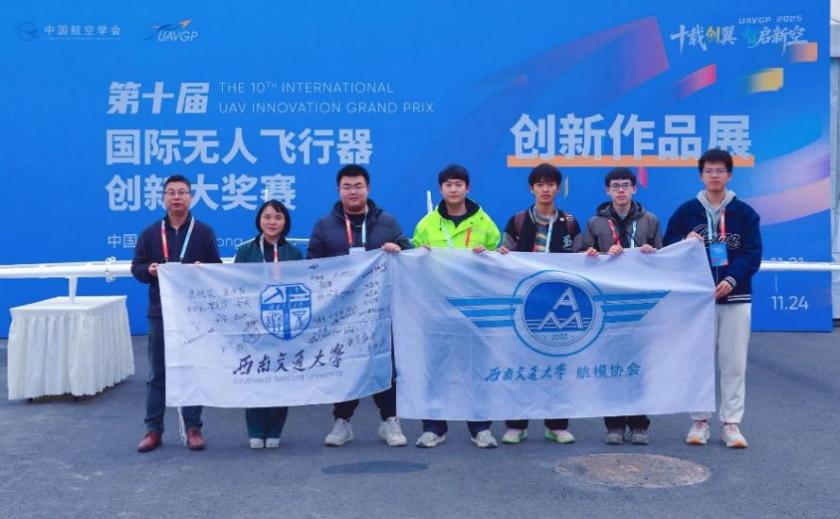 2025年11月21日—11月29日,第十届国际无人飞行器创新大奖赛与第五届川渝大学生未来飞行器挑战赛相继落幕。来自太阳成集团61999航模协会六个学院组成的六支本科生参赛队伍,经过与高等专业院校、科研院所、企事业单位专业技术人员及航空爱好者的激烈竞逐,获得四旋翼实践赛道二等奖、固定翼航模赛道二等奖和航空器实物飞行优秀奖。展现了太阳成集团61999在航空航天领域的育人成效。