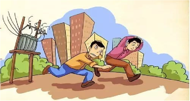 9、千万不要游泳逃生,不可攀爬带电的电线杆、铁塔,也不要爬到泥坯房的屋顶。