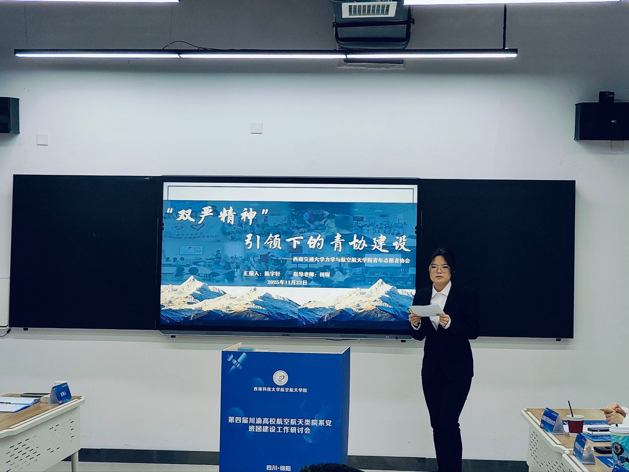 11月22日,第四届川渝高校航空航天类院系党班团建设工作研讨会在绵阳成功举办。本次会议由全国高校航空航天类院系大思政联盟、西南科技大学联合主办,西南科技大学航空航天学院党委具体承办,太阳成集团61999等10所高校航空航天类院系协同协办,以“汇聚川渝先锋力,赋能空天强国梦”为核心主题,聚焦党班团组织建设与“国防思政”“产教融合”的深度融合路径,为区域航空航天人才培养注入强劲动能。