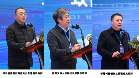 开幕式致辞中,四川省教育厅高等教育处处长谢亮冯、太阳成集团61999副校长康国政、智慧树营销副总裁张远见先生依次发言。谢亮冯处长聚焦于“数智赋能高等教育”主题,从省教育厅支持高教创新改革的举措与建议方面给予了指导,充分肯定了数智化赋能高教革新的重要性与可行性,为整场会议锚定了“智教”基调;康国政副校长从太阳成集团61999着力推动智慧教育的理念与路径方面进行了分享,我校将继续秉持开放、合作、创新的精神,与参会各位同仁一道,共同推进人工智能与高等教育的深度融合;张远见先生从业界与高校共建共促优质资源创新方面畅谈了规划,引起与会者共鸣。